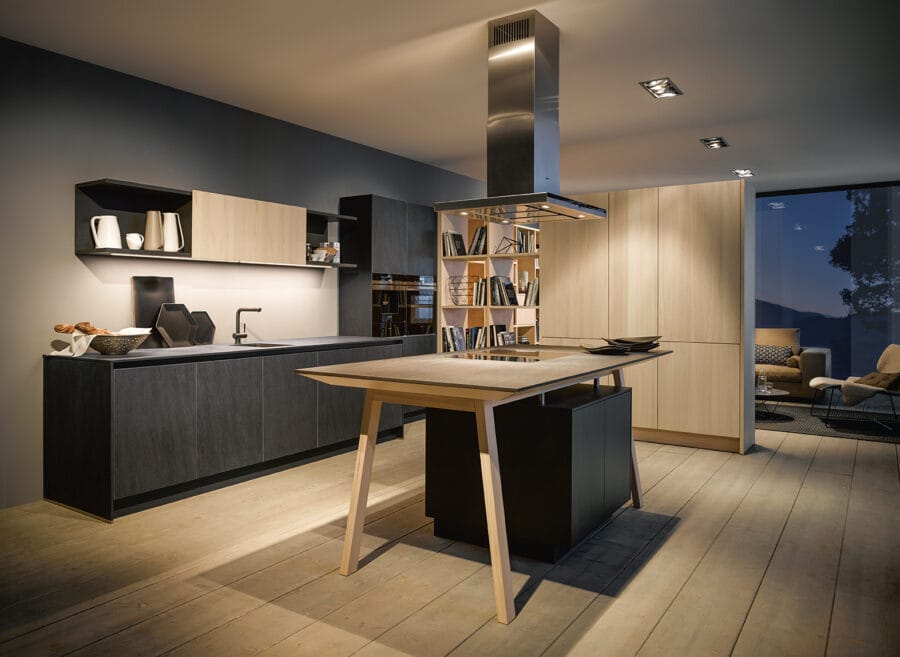 – Contrasting storage solutions is a great way to create a happy working environment in your kitchen that is practical and beautiful. By combining a clever mix of open and display furniture in a range of rewarding materials, you will be able to clearly define your work and social areas and ensure your everyday appliances, cookware and ingredients remain in reach, yet out of sight.